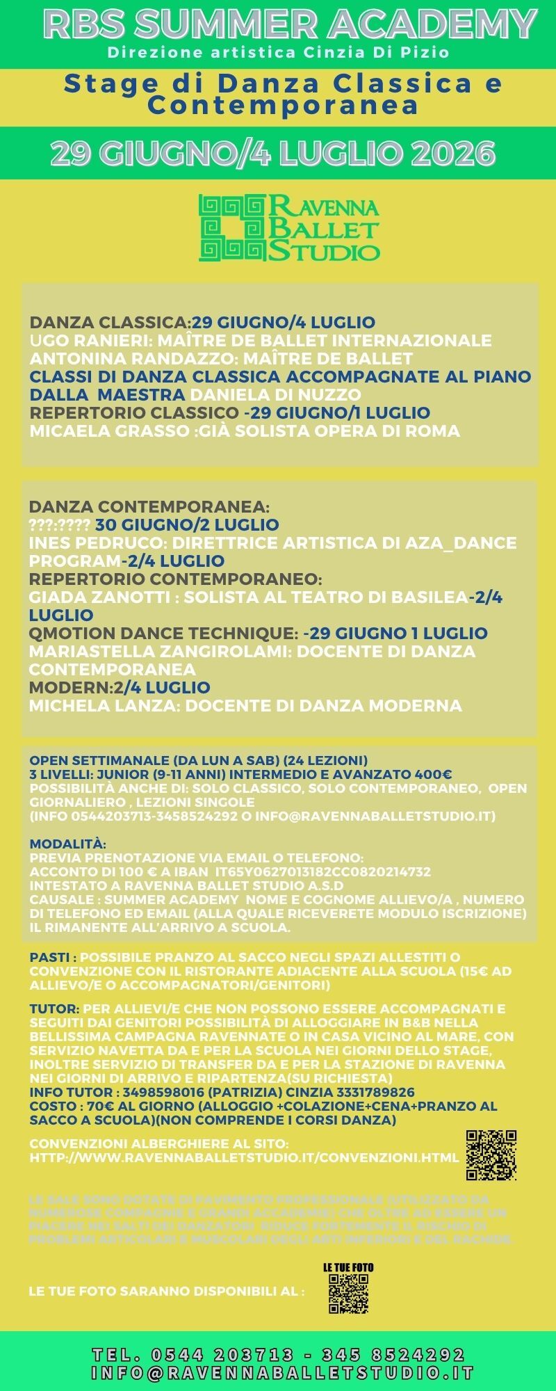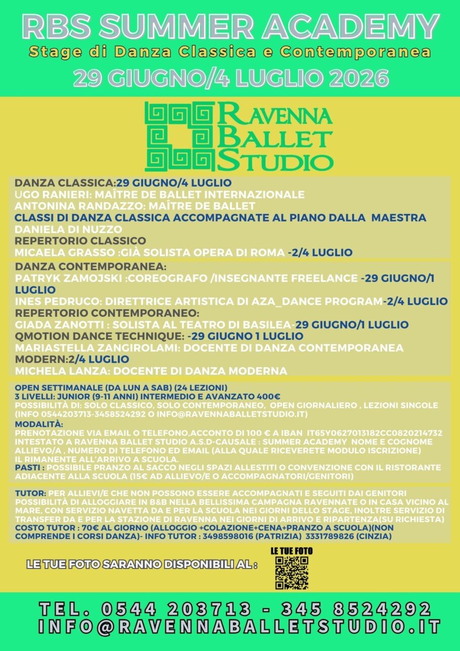 X info e prenotazioni 0544203713 -3458524292 o info@ravennaballetstudio.it