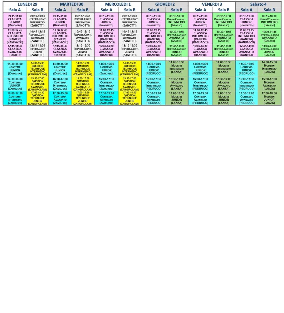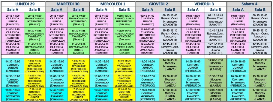 Possibilità anche di: solo Classico, solo Contemporaneo, open giornaliero (4 lezioni) , lezioni singole (costi su richiesta)